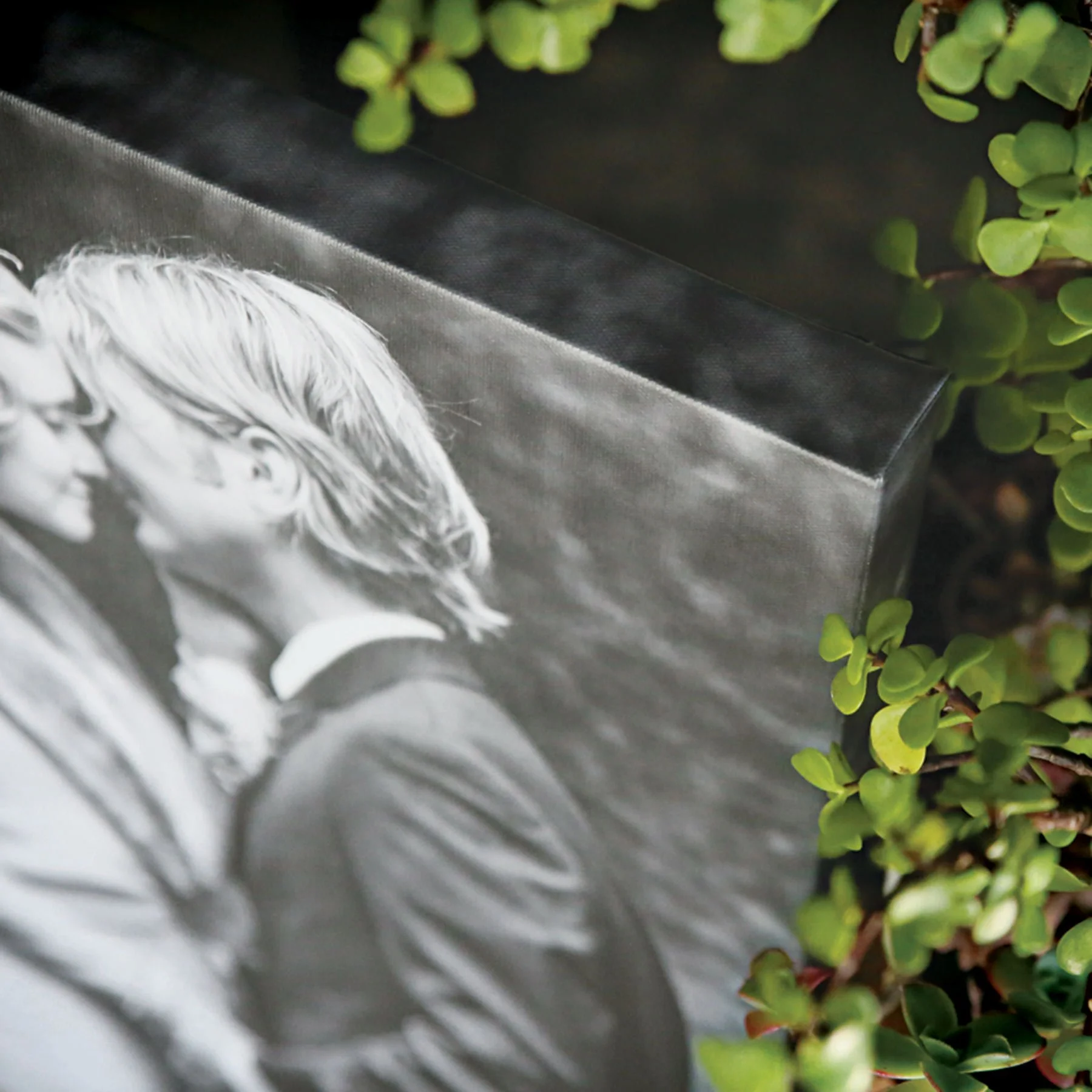 Archival canvas fabric artfully stretched across sturdy wood frames with a lamination matte finish to protect from scuffs, scratches, cracking, and UV light. They are fitted with saw tooth hangers and wall bumpers on the back for easy hanging