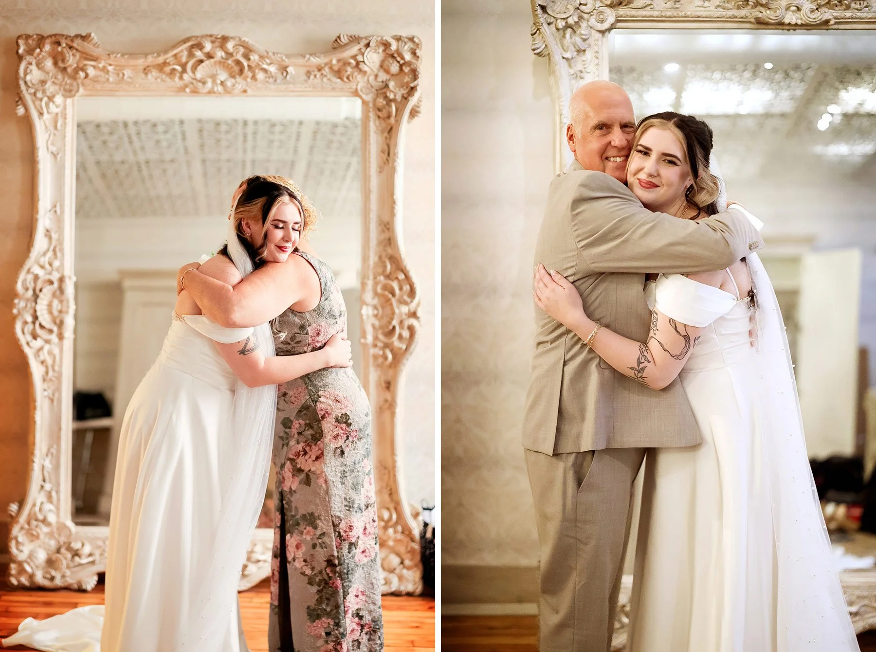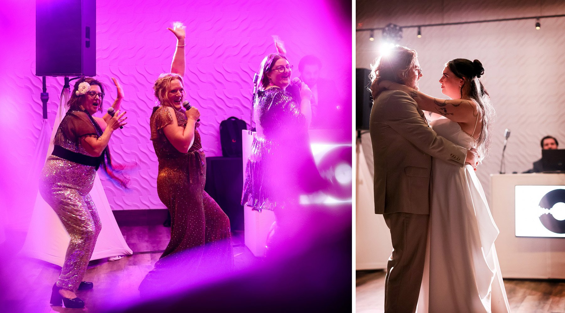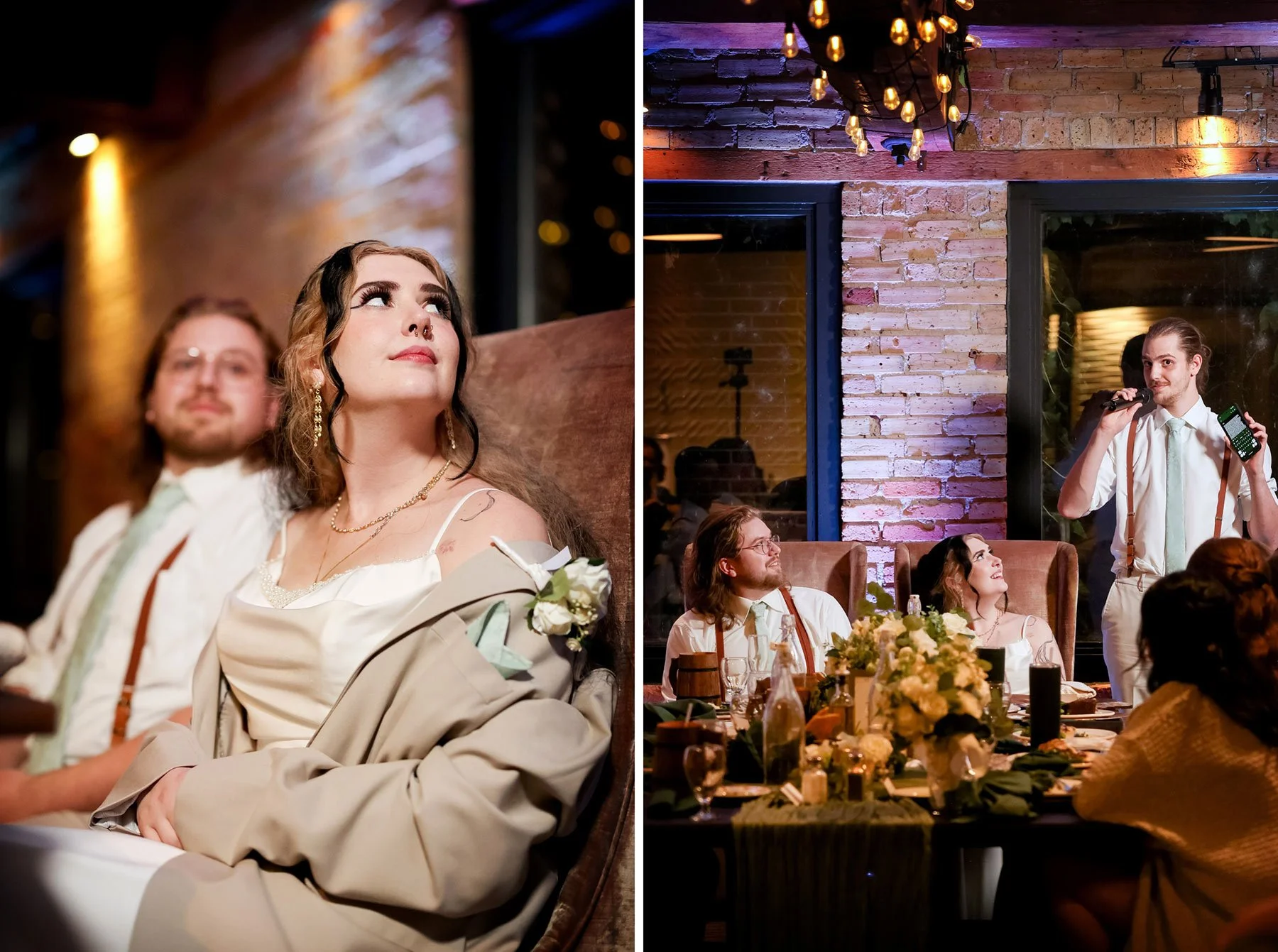 Back inside The Grand 1858, the celebration really kicked into full gear. Guests welcomed the newlyweds with cheers as they made their entrance, and the room quickly filled with energy. Dinner was accompanied by heartfelt and hilarious toasts that had the entire room laughing. Then came the dances, and they were unforgettable. Once the dance floor opened, it stayed full. Friends and family packed the floor, celebrating a couple who clearly mean so much to everyone around them.