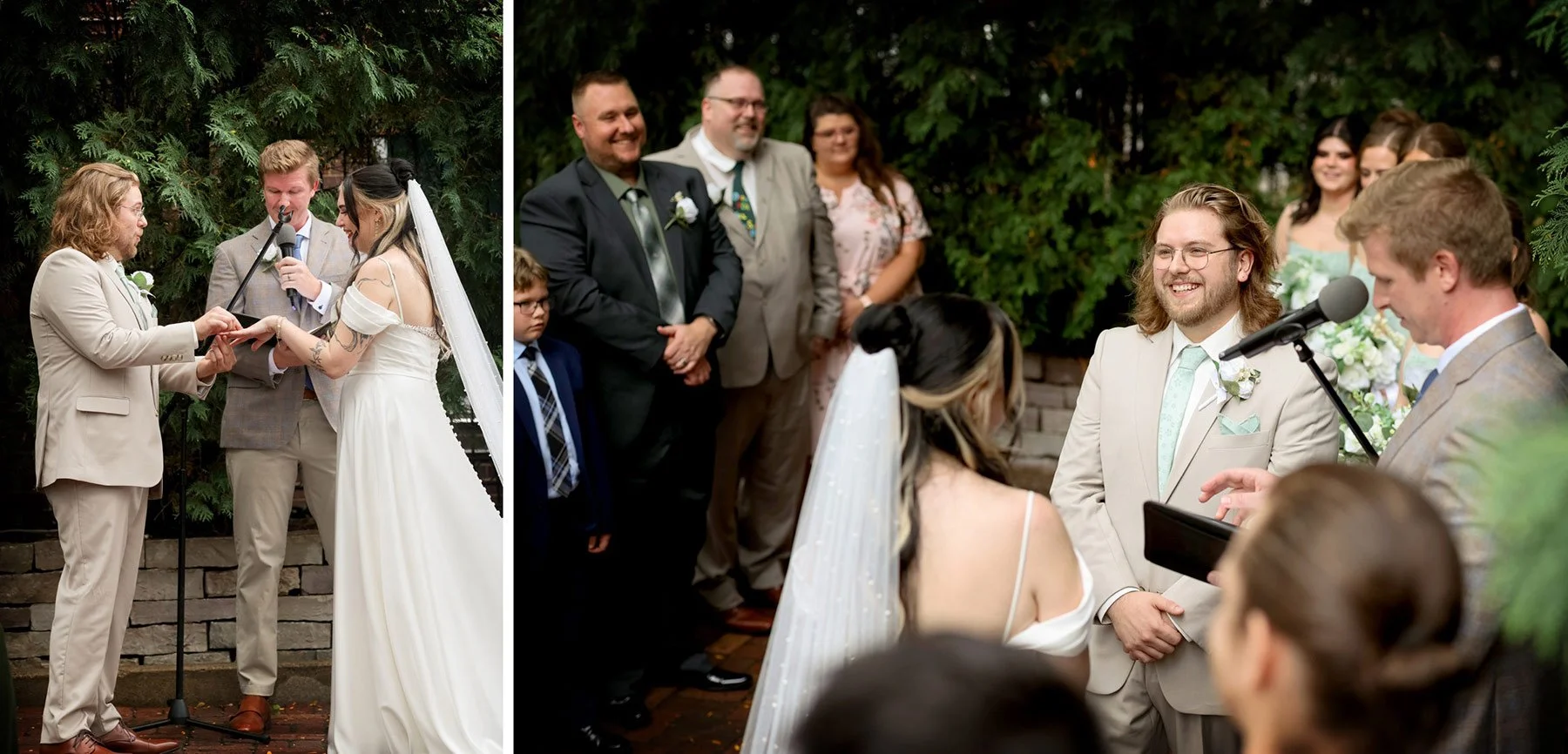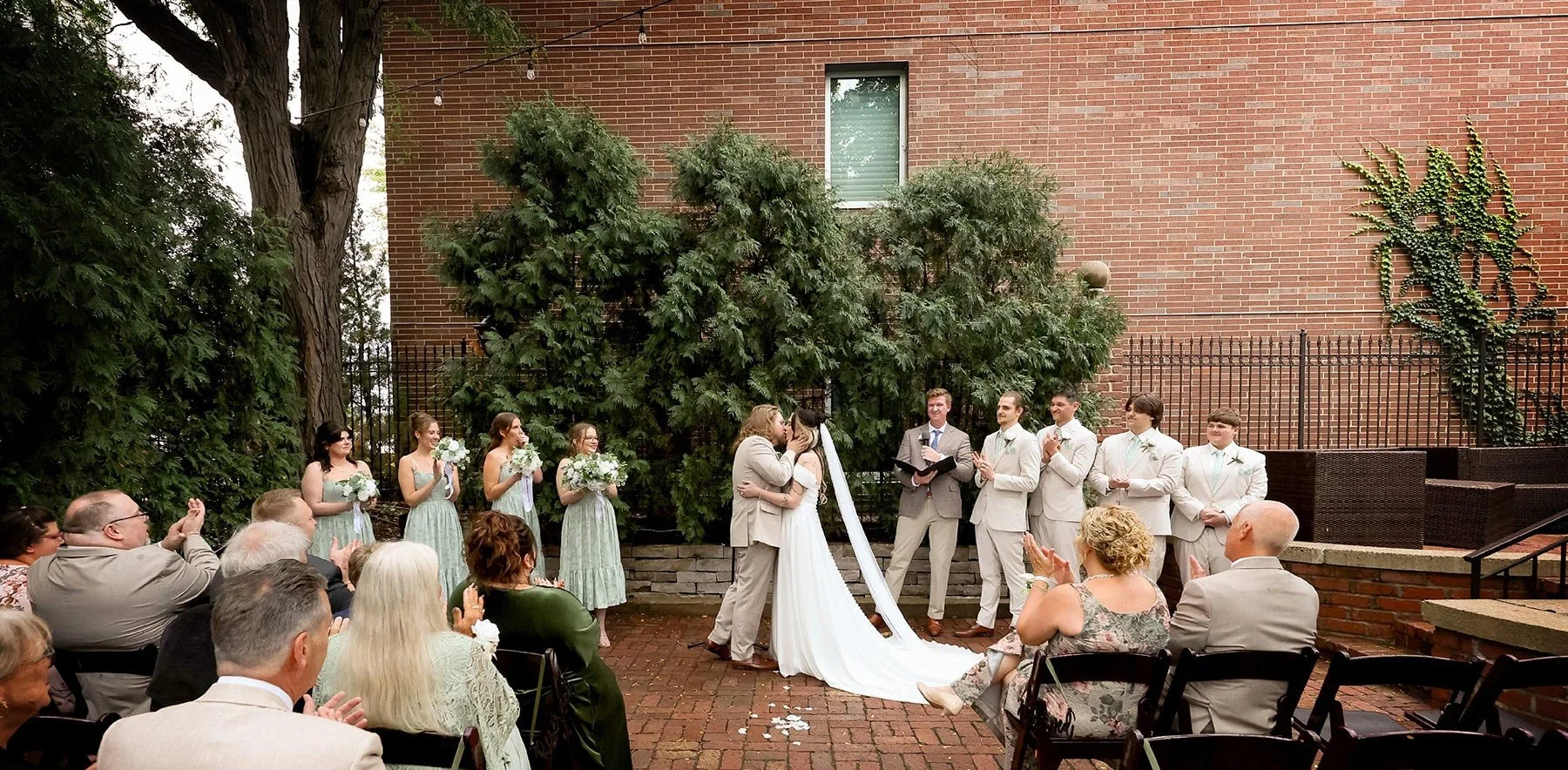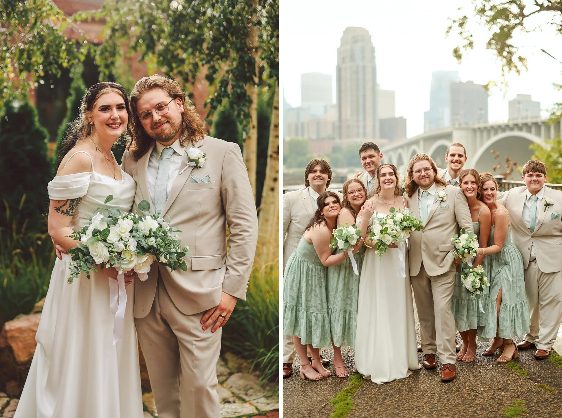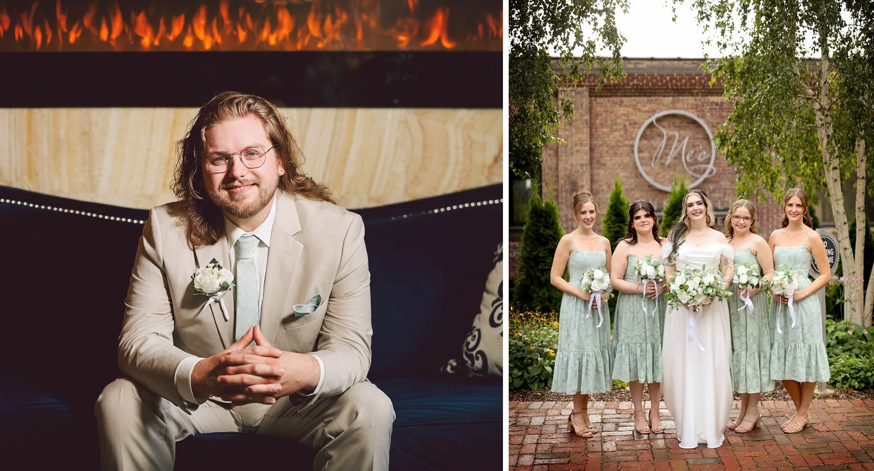 The day began with Anna and Lincoln spending time separately with their closest friends and family as the final details came together. The wedding party looked incredible. The guys wore tan suits paired with mint green ties that matched the bridesmaids’ dresses perfectly, giving the entire group a soft, coordinated look that felt fresh and classic at the same time.