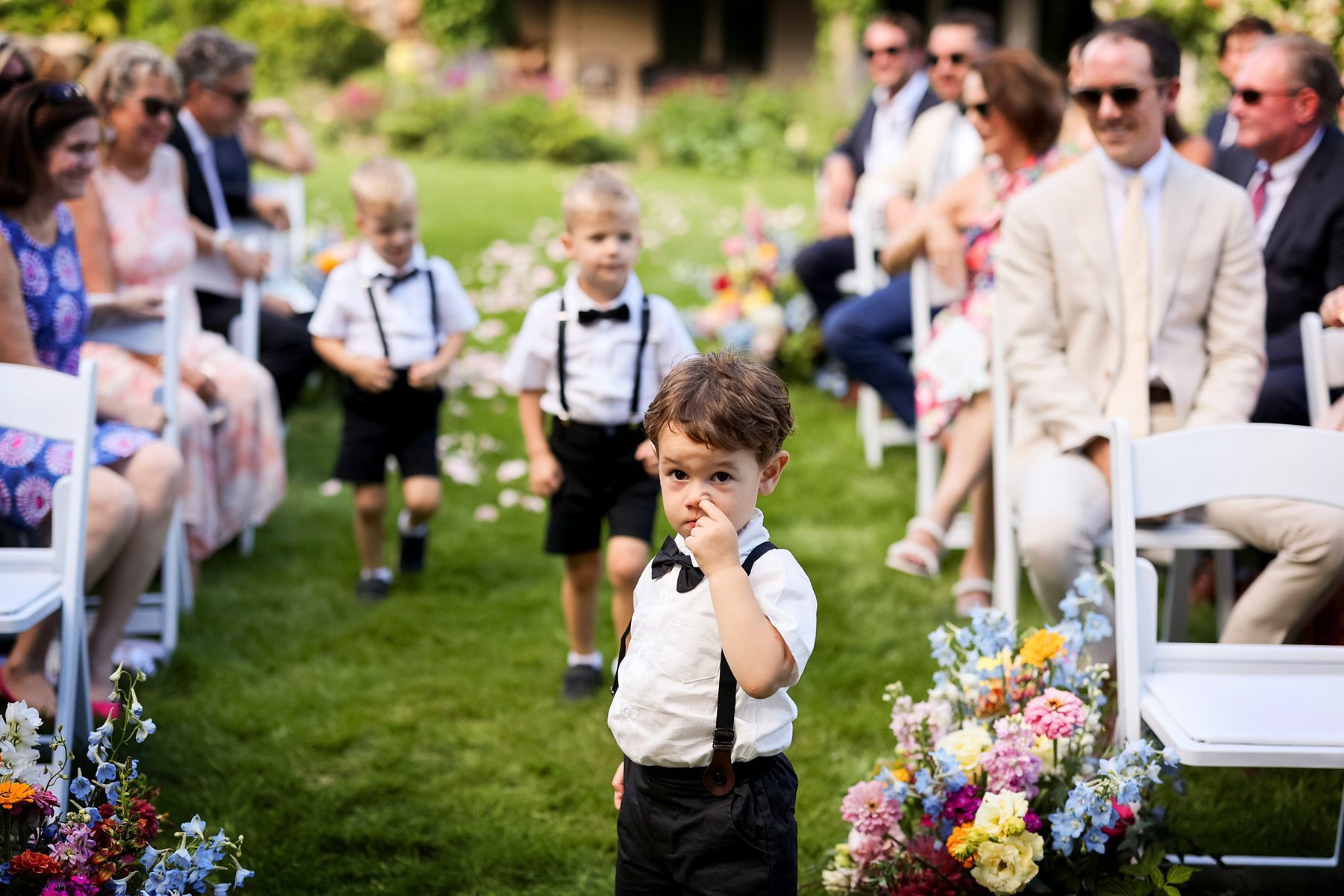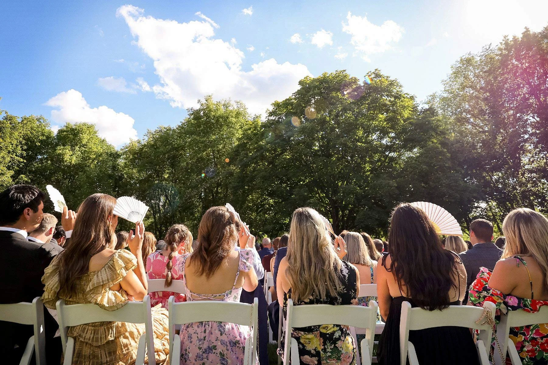 After some fun time with their friends, everyone collected themselves and prepared for the ceremony as guests began to take their seats. Katie’s dad proudly walked his daughter from the house, across the lawn, and through the aisle of happy friends and family with Katie beaming the entire way. Joey’s smile matched hers and when they held hands at the end once again under the shade of the tree, they felt complete. Their sweet ceremony was met with happy tears and lots of laughter. Then they laughed and cheered all the way down the aisle and back to the house to celebrate.