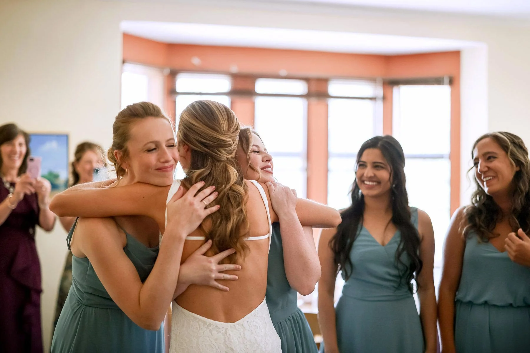 We teamed up with the wedding party shortly after and then the laughter really began. They had a large group of amazing people making up their crew and they were true hype-men, cheering them on with every pose. I knew from the night before that this was a great group of people so I was extra excited to share another fun day with them. While we explored the grounds, the guests filled the church and it was finally time for the ceremony to begin. They laughed and cried during their vows and the entire church shared those emotions with them. But there were no tears during their first kiss, only pure celebration! They confidently marched down the aisle to be greeted by a cheering crowd showering them in flower petals. It felt like something out of a movie.