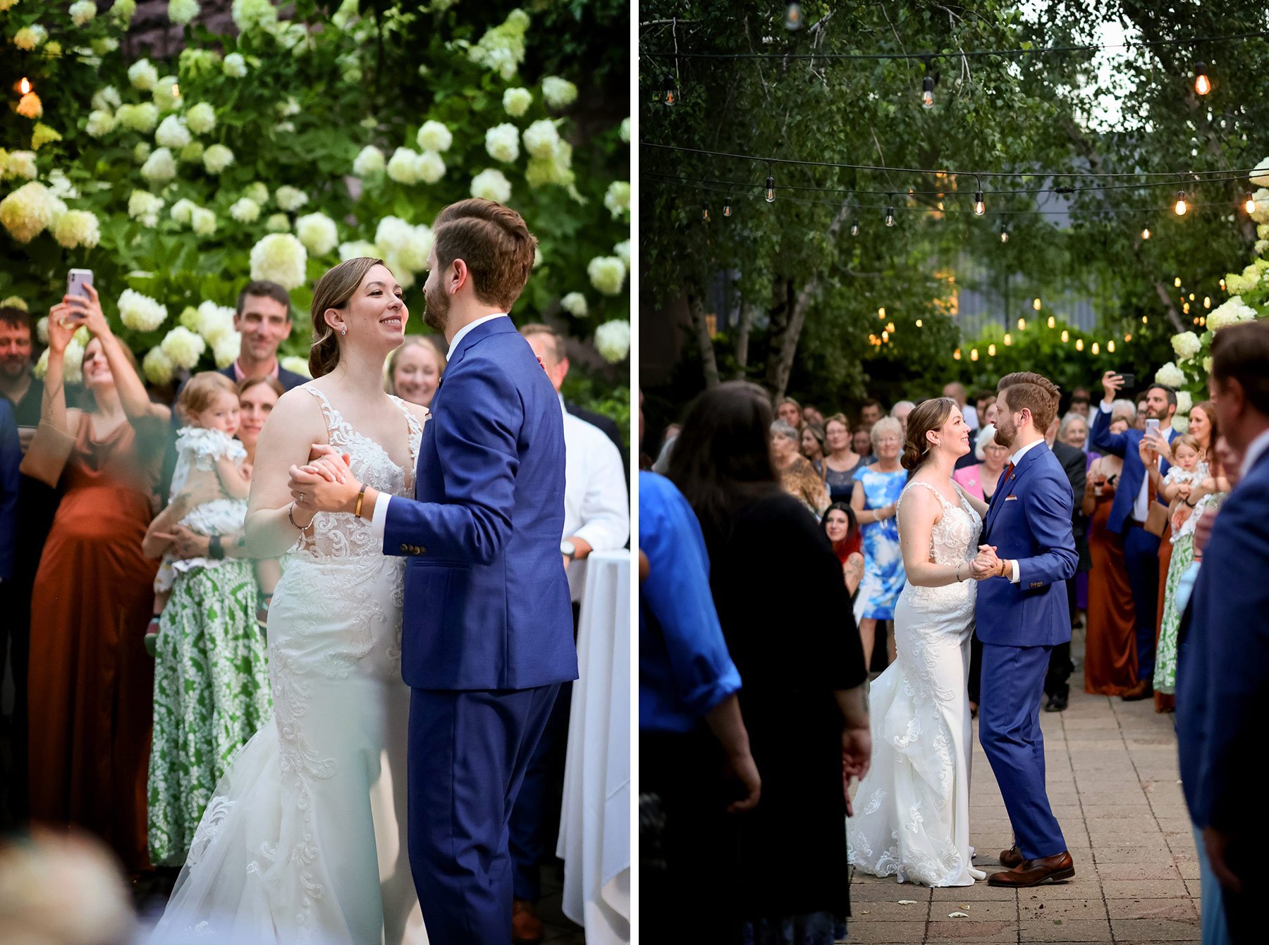 The reception hall was warm and full of love, full of flowers, and full of people who adore these two. Toasts were heartfelt, funny, and brought the whole room together. But my absolute favorite moment of the day was when everyone headed outside for their first dance in the courtyard under the open sky. It felt like a movie scene lit by the soft glow of summer light.