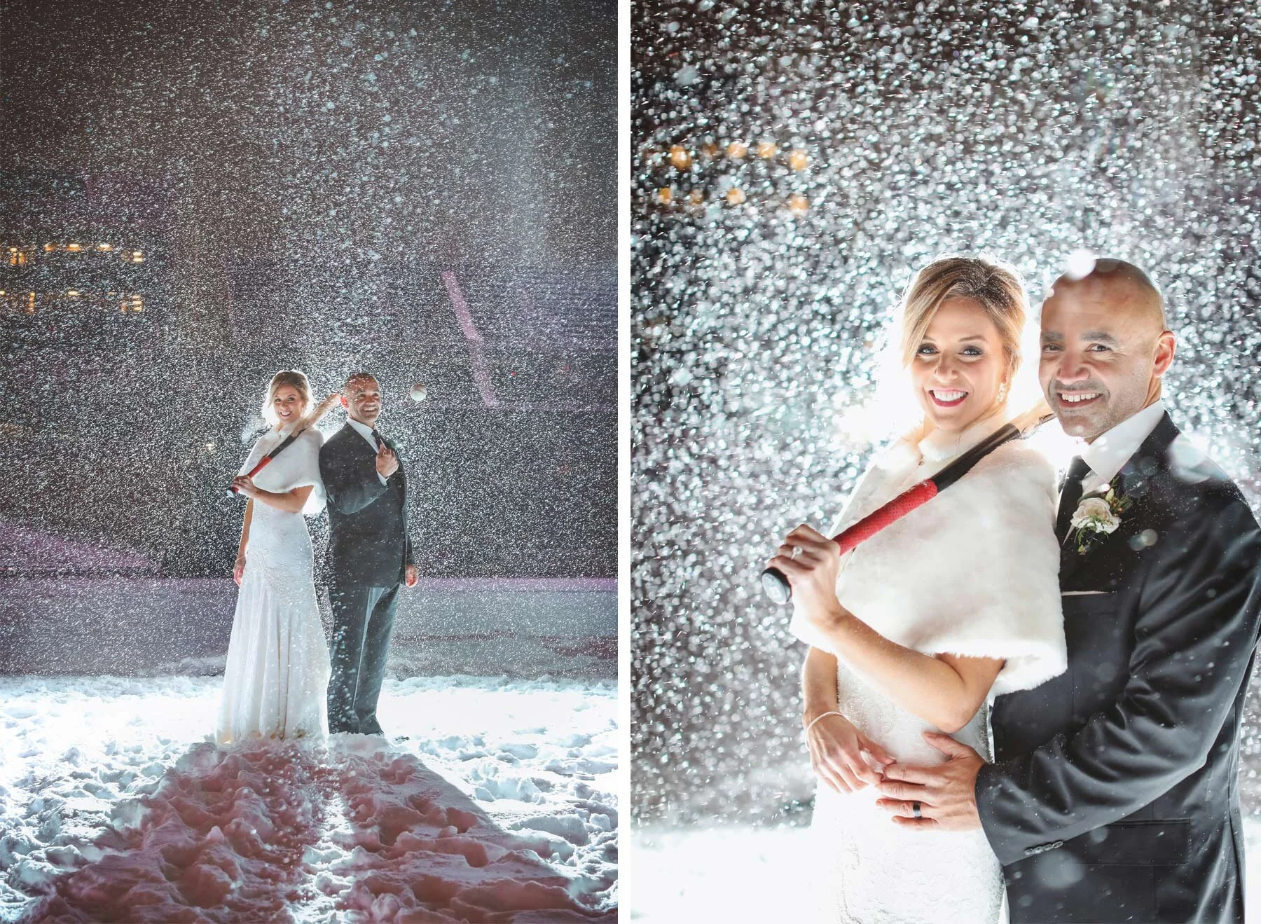 Power hitters are like power couples; they are fewer and farther between than you may think. It takes a watchful and discerning eye to identify the qualities that could lead to greatness. When one sees it, you make your move....decisively. Sometimes people settle for the good. Other times people are happy with better. Sean is a lifelong career scout for professional baseball and Leala scouts and teams professional talent in her work as well. So when it comes to their personal life, Leala and Sean decided to hold out for the very best. It was like they each waited for the top pick in the draft room and they ended up choosing each other. Everyone they invited knew it, and you could feel the energy build all night. As we traveled from Assumption Church to Target Field, snowflakes filled the sky and created a blanket of white to work with down on the field. Even the wedding party had fun behind the scenes of the stadium and in the locker room before we worked our way up to the party. As the dancing began, all in attendance knew that this choice was extremely special, a once in a generation. I can't wait to see what you two build from here!