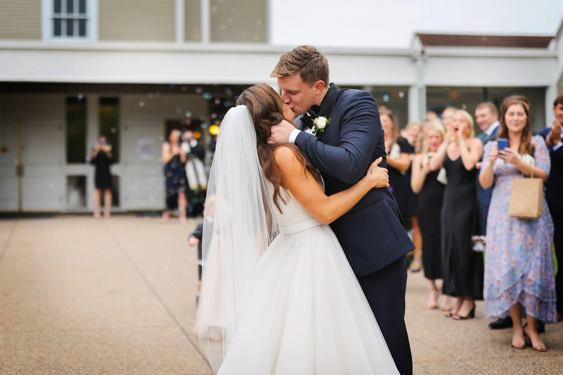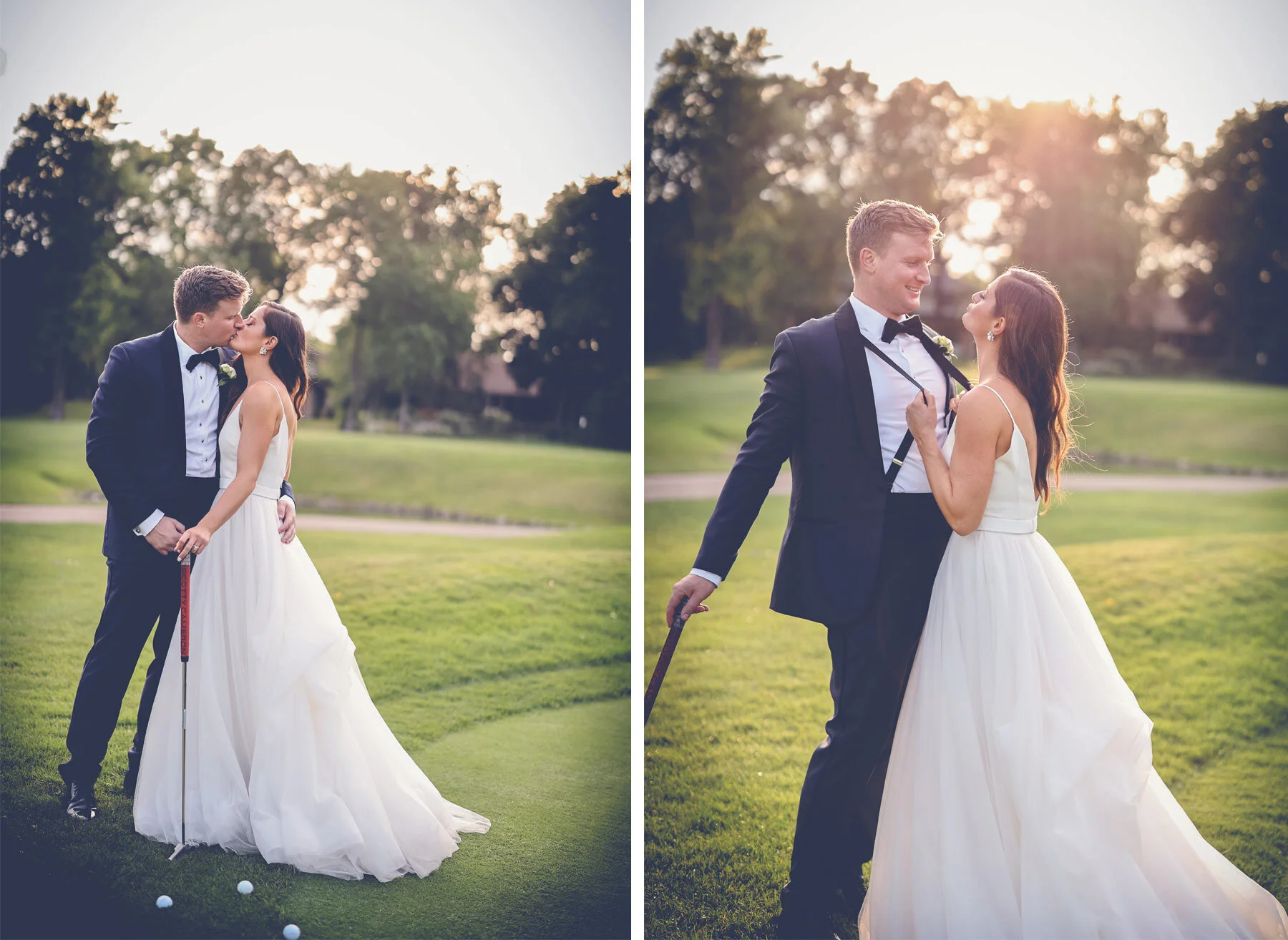 This momentous event wasn’t just a coming together of a couple, but a coming together of two families. Both Maggie and Kevin are incredibly close with their families and therefore, their families became close with one another. From the very first moment I stepped foot into their rehearsal dinner at Minikahda, I knew this was a close knit group and it was going to be a very, very special day. I joined Maggie at her parents house the next morning while all of her closest girlfriends waited anxiously to see her in her dress. When the moment came, everyone screamed in excitement and even shed a few tears. I’ll say it again, this group is close. I really felt like part of the family as we all ventured to Interlachen to meet up with the guys and for Maggie and Kevin’s beautiful first look. Their ceremony took place at the nearby Colonial Church and the pastor was another extension of their near-family and fun fact, I’ve known him for nearly 30 years too! After a grand exit, the couple boarded their very own Interlachen golf cart to take the slow drive back to the course. Wait, what?! I’m still not sure how they pulled this one off but I’m completely on board! I jogged alongside the cart as the couple giggled and puttered their way through the backroads all the way back to Interlachen. We timed it just right when we got there because rain had just blown through so the whole course was empty and waiting for us. The greens were extra vivid and these two happy golfers were in their element. We could have walked the course for the rest of the evening, but we hurried back to the ballroom where beautiful flowers and Delft blue vases awaited us at each table. The hospitality and food was amazing, as always, and then it was time for the dance. Maggie was part of the dance team growing up so she leaned over to me at one point and said, “I’m ready to get after it tonight.” I laughed, but she wasn’t kidding. She pulled out dance moves that would impress anyone and her dad even got on board with a choreographed father daughter dance. The evening flew by in a whirlwind of laughter, dance moves, and family. Thank you all for inviting me into your crew for the weekend and to one of the best dance parties around!