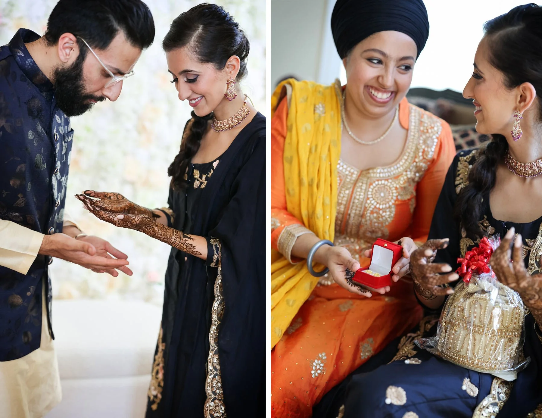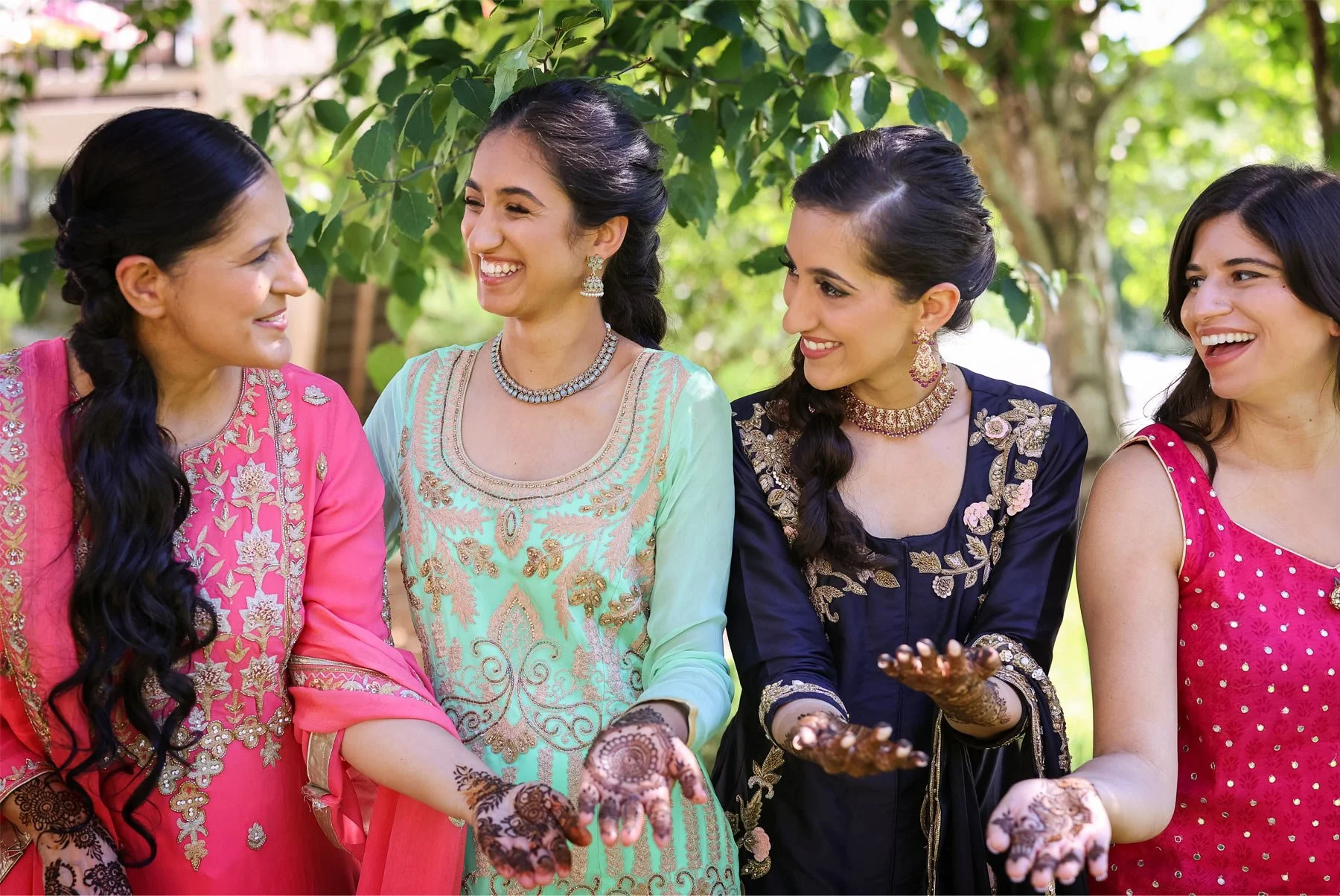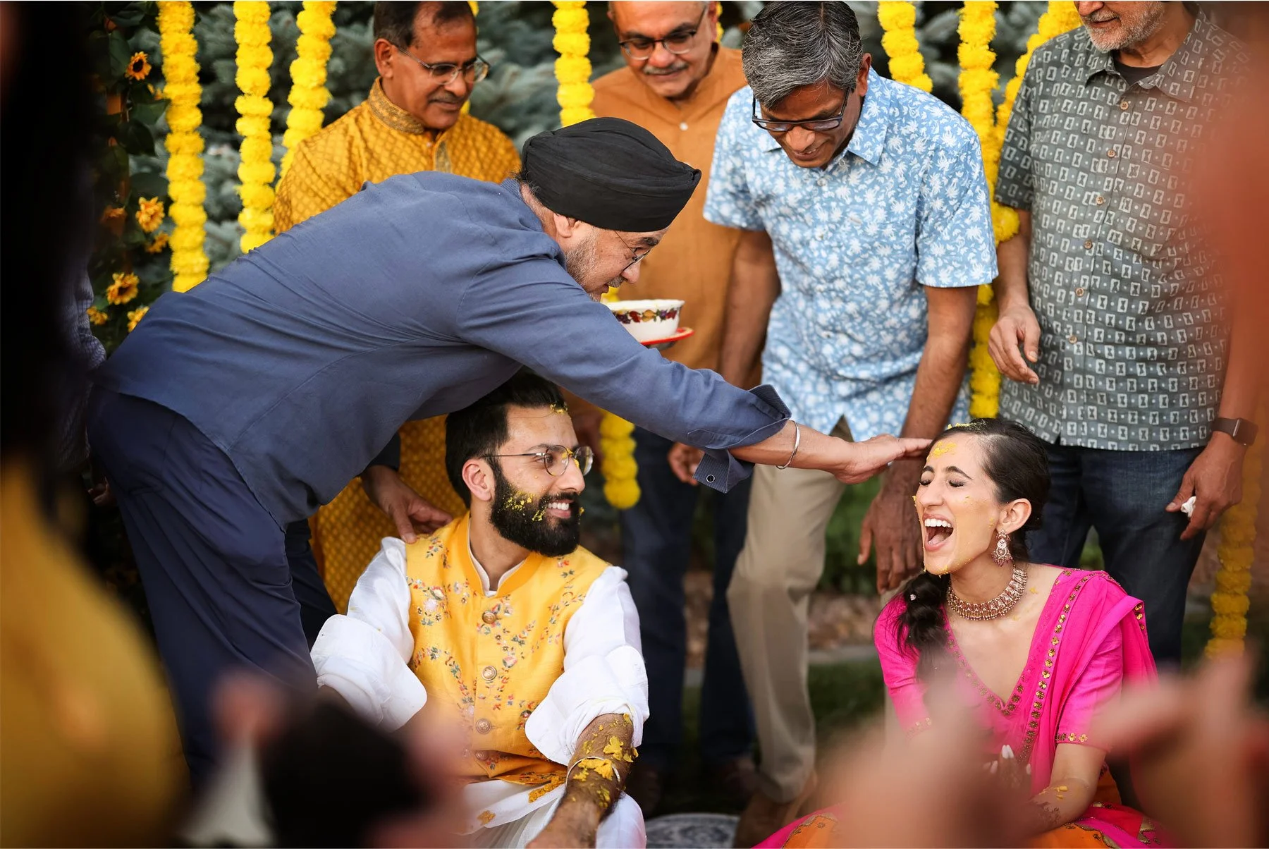 The first day of celebrations was a very special one, because not only was it the mehndi and haldi ceremonies, but it was also Parmpreet’s birthday! I met the ladies at a special location where beautiful henna art was already in full swing. Parm sat and admired all of her loved ones as they laughed together while the henna artist finished each masterpiece. Before the haldi ceremony began, birthday gifts were given and Parm showed off her henna art to Prince who was excitedly waiting for his love. Both changed into their haldi attire, but not before Parm showed me a sneak peak of all her dresses to come! The ceremony was so sweet, colorful, and pretty hilarious. Loved ones greeted the couple by smearing turmeric across their arms and face with the wildest guests going last. Everyone was howling with laughter and Parm and Prince were completely overjoyed wearing smiles that lasted all weekend.