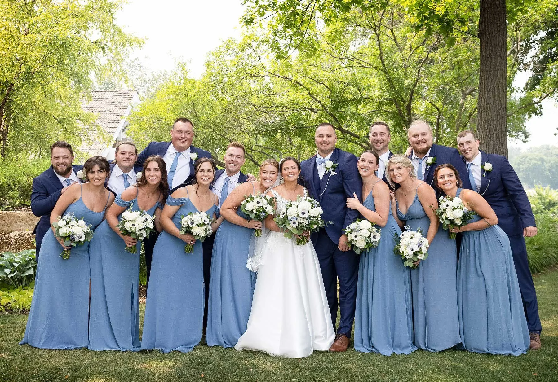 They arrived at Bearpath Country Club just as the sun was setting which cast a beautiful golden glow over the course. The party was underway inside while Shannon, Jake, and Erin enjoyed the last bit of light. It was a beautiful quiet moment where they were able to take in all the memories they had made that day. They breathed deep and smiled before making their way back inside. The crowd jumped to their feet and cheered as they walked to the head table and you could feel the joy overflowing from the beautiful space. After a few sweet toasts that had everyone laughing, they shared their first dance and parent dances. Then their loved ones grabbed sparklers and everyone ran outside to send the happy couple off in style!