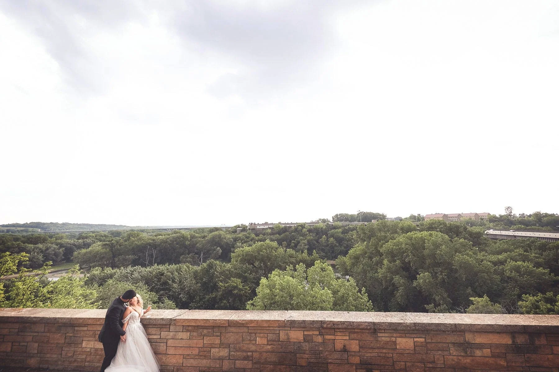 We decided to mix up the super modern stylings of the Radisson Blu with some lush greenery by visiting the Fort Snelling overlook and riverbank. The trails were picturesque and the pair fit perfectly as if they were walking into their very own fairytale forest. We popped a bottle of bubbly as a pre-ceremony celebration and enjoyed the gorgeous views and cool breeze blowing off the riverbanks.